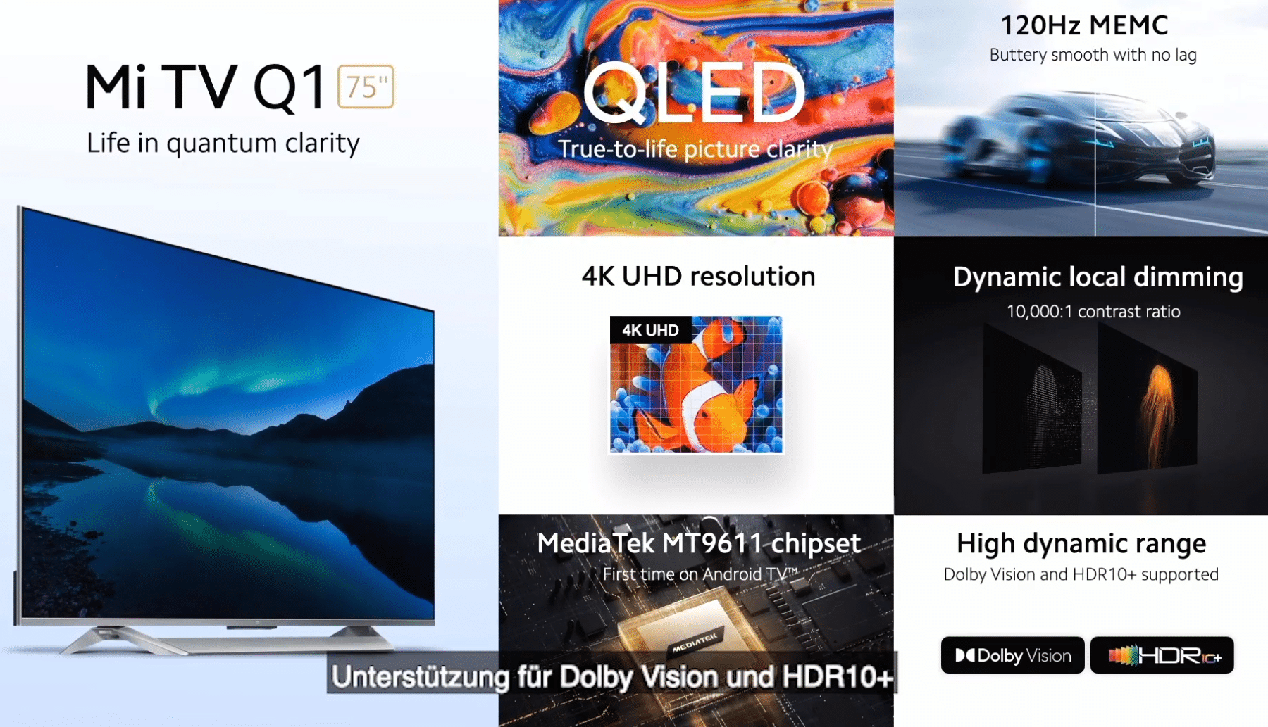 Xiaomi Mi TV Q1 ab 1299€ 75″, 4K, QLED, HDR10+, Dolby Vision, HDMI 2.1, 120Hz